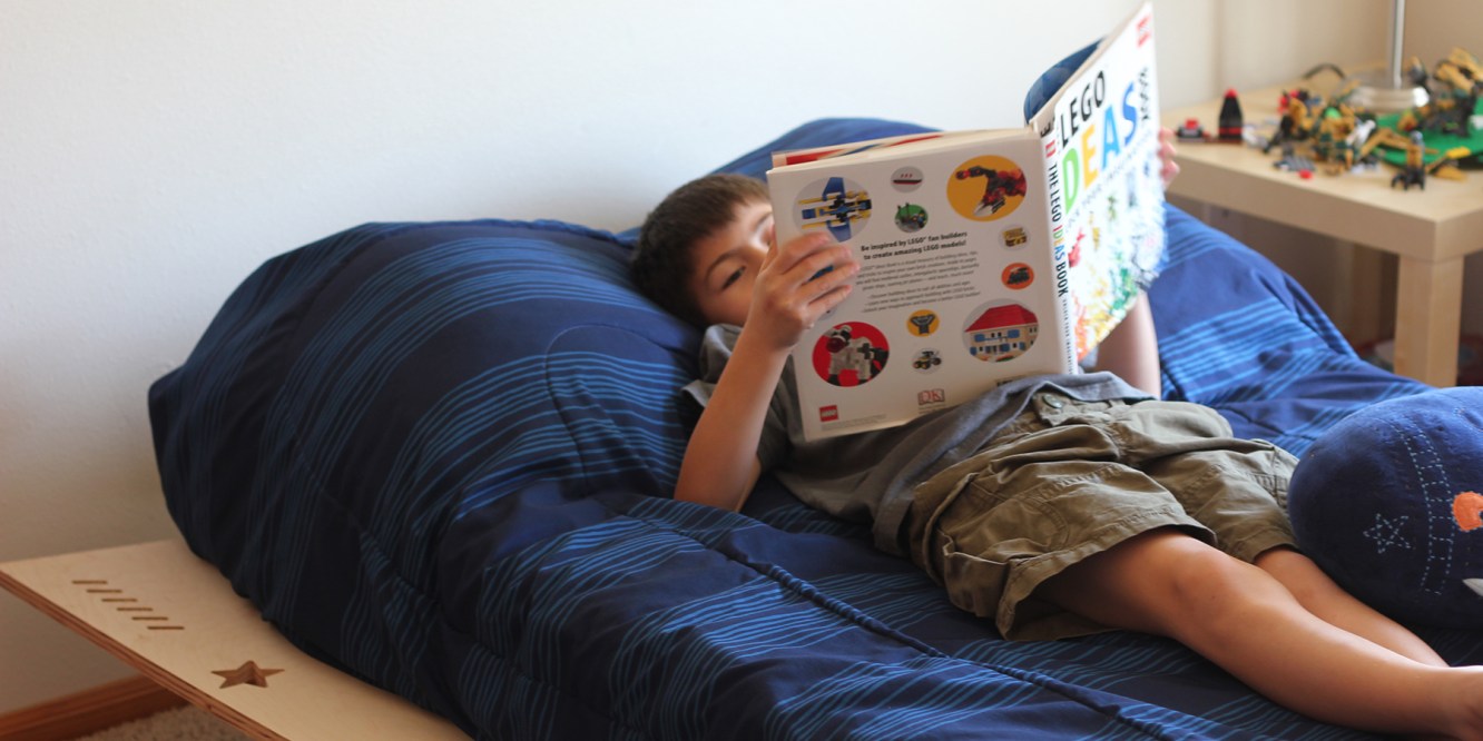 The bed platform was made with hard maple plywood in the shape of a rocket ship.